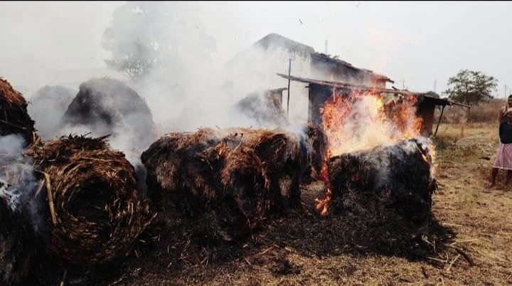 Sugarcane leaves are being collected for free from the fields, the land will not be able to get organic manure. हरिप्रसाद गोहेआमला/बैतूल ! एक तरफ सरकार खेतों में नरवाई जलाने पर पाबंदी लगाकर किसानों को फसल के अवशेष से जैविक खाद बनाने और भूमि की उर्वरा शक्ति बढ़ाने के लिए प्रोत्साहन दे रही है, वहीं दूसरी ओर बैतूल जिले में एक कंपनी के द्वारा किसानों के खेतों से गन्ने की सूखी पत्तियां बटोरने का काम किया जा रहा है। इससे खेतों में सूखी पत्तियां ही शेष नहीं रहती हैं जिससे न तो जैविक खाद बन पाएगी और न ही जमीन की उर्वरा शक्ति बढ़ेगी। हद तो यह है कि कृषि विभाग का अमला इसकी जानकारी होने के बाद भी आंखे बंद किए बैठा नजर आ रहा है। उन्नत किसानों की मानें तो किसान गन्ने की सूखी पत्तियों को मल्चर की मदद से बारीक कर मिट्टी में मिला देते थे जिससे वह सड़ने के बाद जैविक खाद में बदल जाती थी और किसानों को फसलों से बेहतर पैदावार मिल जाती थी। अब निजी कंपनी के द्वारा किसानों को मुफ्त में खेत साफ कर देने का लालच दिखाकर गन्ने की पत्तियों को बटोरकर बंडल बनाने का काम किया जा रहा है।कंपनी के द्वारा जिले के गन्ना उत्पादक क्षेत्रों में बड़े पैमाने पर यह कार्य प्रारंभ किया गया है और जगह-जगह गन्ने की पत्तियों के बंडल जमा कर रखे गए हैं।बारूद का काम कर रहे इन बंडलों में आग लगने की घटनाएं भी होने लगी हैं। गत दिवस मुलताई तहसील के ग्राम साईंखेड़ा में राहुल साहू के खेत में तथा गोलू मांकोड़े के घर के समीप रखे सूखी पत्तियों के बंडल में आग लग गई। घटना को लेकर ग्रामीणों ने प्रशासन को आवेदन देकर शिकायत दर्ज कराई है और भविष्य में बड़ी अनहोनी की आशंका जताई है। बताया जा रहा है गन्ने का कचरा एक कंपनी द्वारा स्टाक किया गया था। हैरानी की बात यह रही कि घटना के बाद कंपनी का कोई भी कर्मचारी मौके पर नहीं पहुंचा। आग इतनी तेजी से फैल रही थी कि आसपास के घरों और खेतों को नुकसान पहुंचने का खतरा बन गया था। ग्रामीणों ने प्रशासन से मांग की है कि यदि कोई कंपनी गांव या निजी भूमि पर ज्वलनशील कचरा या डस्ट रखती है, तो उसकी सुरक्षा, निगरानी और नियमित निरीक्षण की पूरी जिम्मेदारी कंपनी की हो। शुगर मिल के प्रयास से सुधर रहीं जमीनें:जिले में गन्ना उत्पादक क्षेत्रों में शुगर मिलों के प्रबंधन की ओर से अनुदान पर गन्ने की सूखी पत्तियों को मल्चिंग करने वाले उपकरण दिलाए गए हैं। इनसे किसान और युवाओं को नया राेजगार भी मिल रहा है वहीं किसानों को खेतों में आग लगाने की बजाय मल्चिंग कराने पर शुगर मिलों के द्वारा किराए में 50 प्रतिशत की छूट भी दी जाती है। इसका ही नतीजा है कि पिछले करीब पांच वर्ष से जिले के गन्ना उत्पादक किसान कटाई के बाद गन्ने के खेतों में अवशेषों को अाग के हवाले न करते हुए मल्चिंग कर जैविक खाद के लिए बिखरा रहे हैं। इससे म