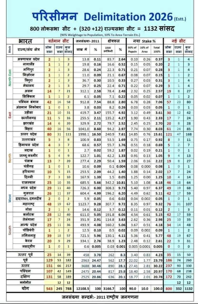 संसद के परिसीमन 2026 को लेकर एक अनुमानित रिपोर्ट सामने आई है,