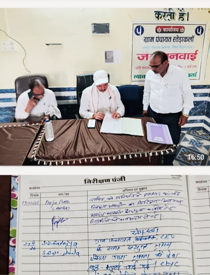 एसडीएम एस.के. बडोनिया ने 27 अप्रैल को ग्राम पंचायत रतेड़ा कला का भी औचक निरीक्षण किया। सीईओ के साथ पीएम आवास निर्माण और ई-केवाईसी की जांच की। ई-केवाईसी 92 प्रतिशत पाई गई। पंचायत भवन की टाइलें उखड़ी मिलीं, जिन्हें बदलने के निर्देश दिए। पेयजल व्यवस्था की भी जांच की।