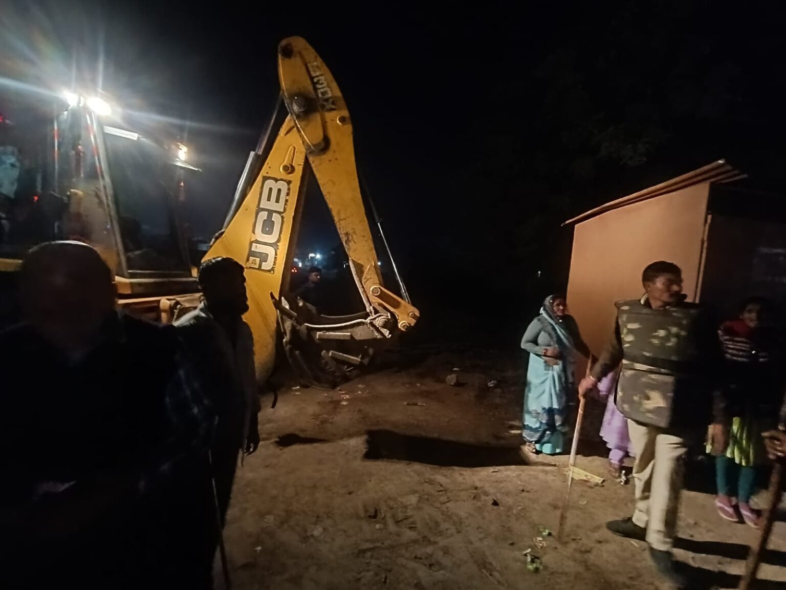 मौके पर पहुंचे अधिकारी, विरोध के बीच शुरू हुई कार्रवाई