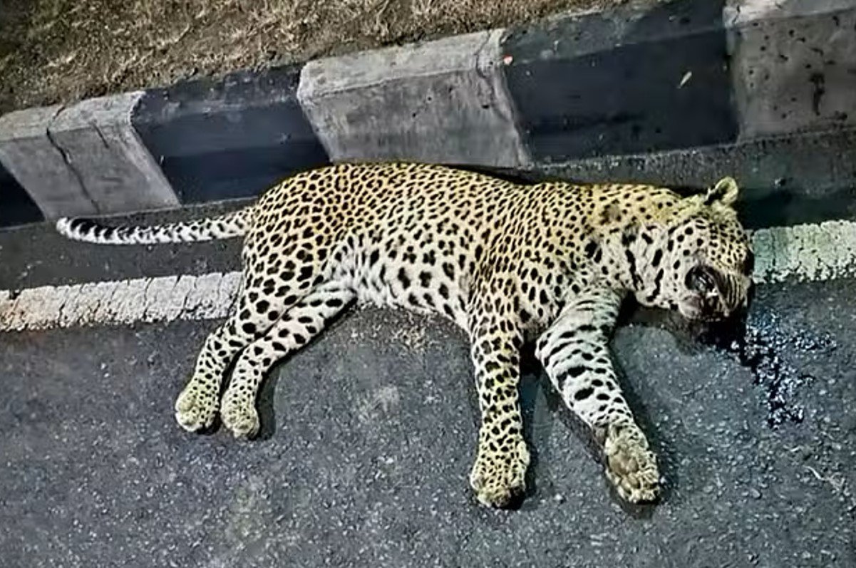 नेशनल हाइवे पर मिला नर तेंदुए का शव, अज्ञात वाहन की टक्कर से मौत की आशंका